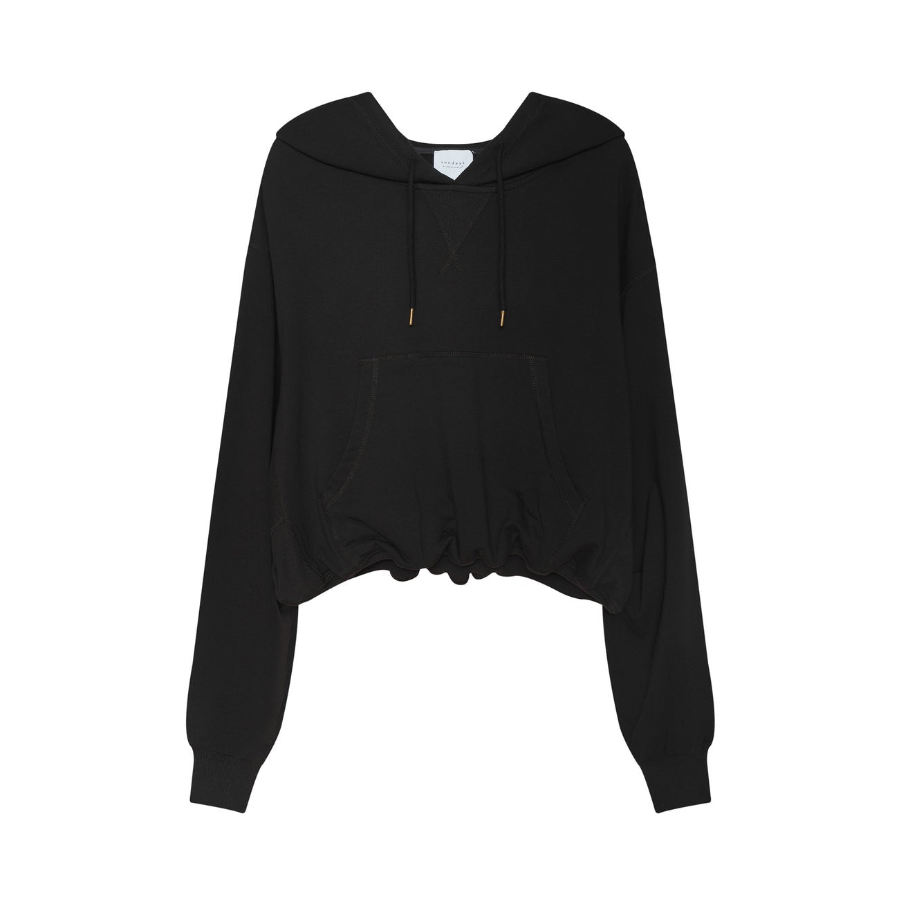 The Aries Hoodie. This bubble, oversized hoodie is slightly cropped and features a drawstring hood and a classic front pocket for effortless, relaxed style. Pair with the matching Nara pants for the ultimate cozy off duty look.
