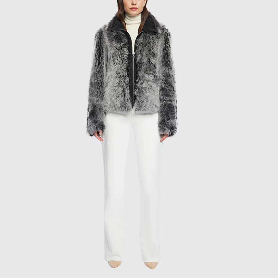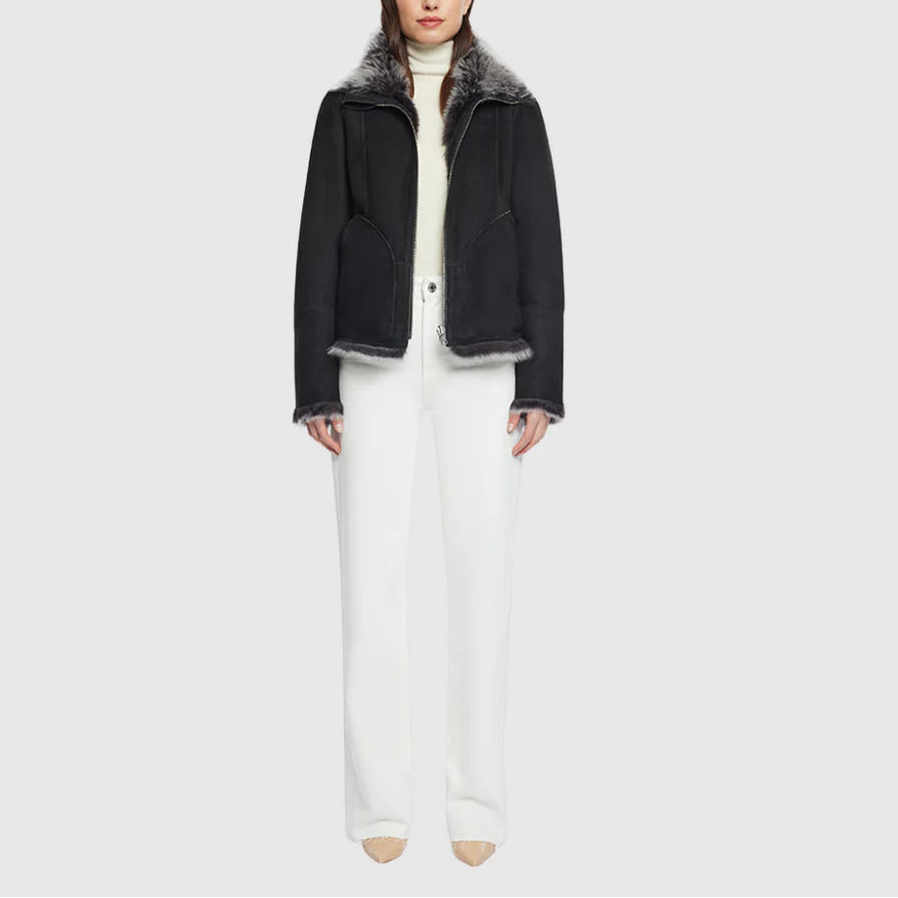 The HOPE Jacket is a versatile statement piece, crafted in black brisa toscana shearling with a modern cropped cut. Designed with a wool-out teddy finish, it reverses to a sleek suede-out jacket, offering two looks in one. The relaxed shoulder and spread collar create a casual yet elevated silhouette, while slash side pockets add functionality. Finished with a front zip closure, HOPE is the perfect blend of cozy texture and polished edge.