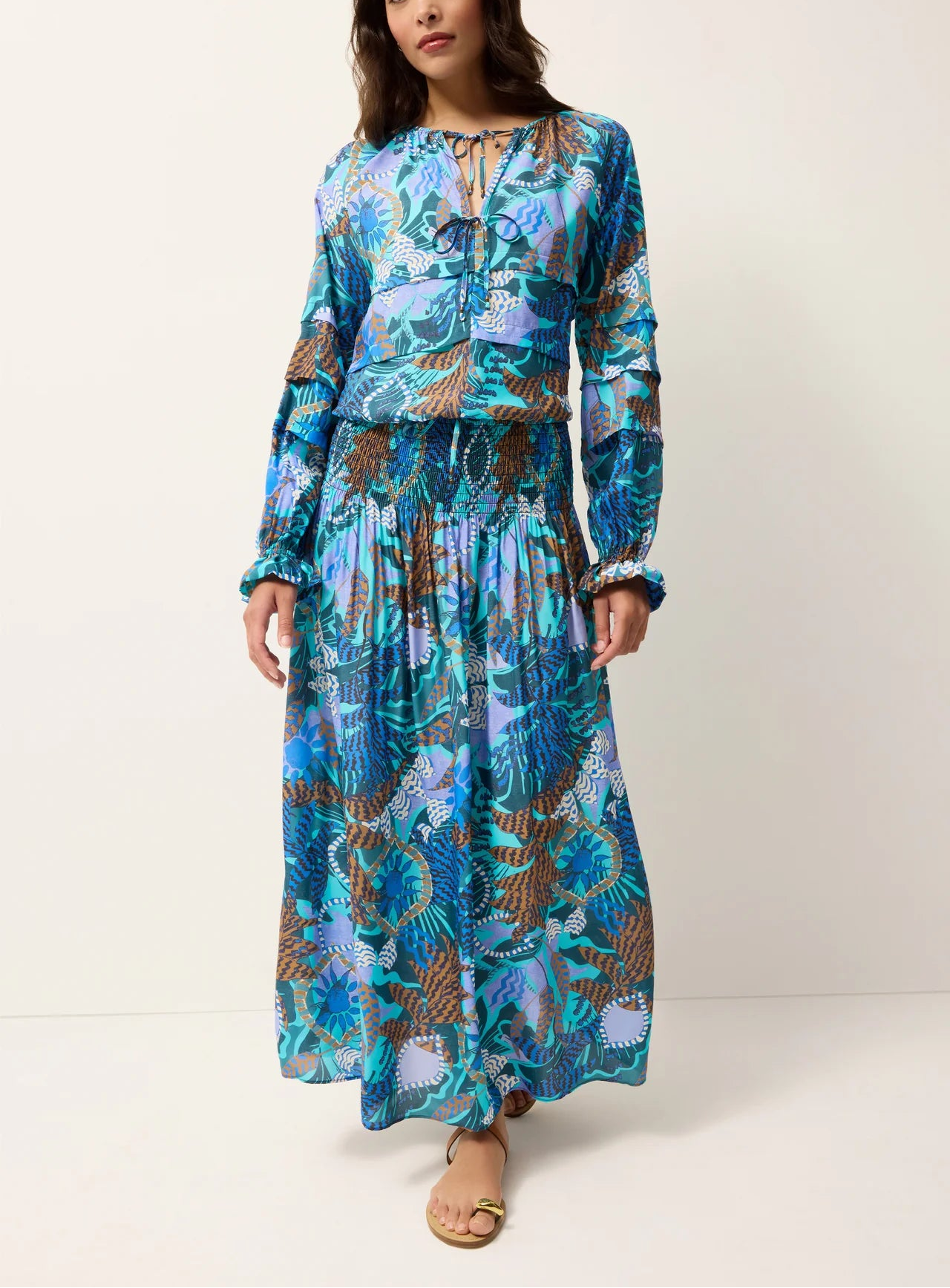 Designed to wear as a skirt or a strapless dress, Stacie is one of Marie Oliver’s most versatile separates. Fabricated in a silky viscose, she’ll be the headliner for your capsule weekend wardrobe. Pair Stacie back to our Umi Blouse for a breezy set or style it as a cover up with our strappy Laguna and Caprina bikini.