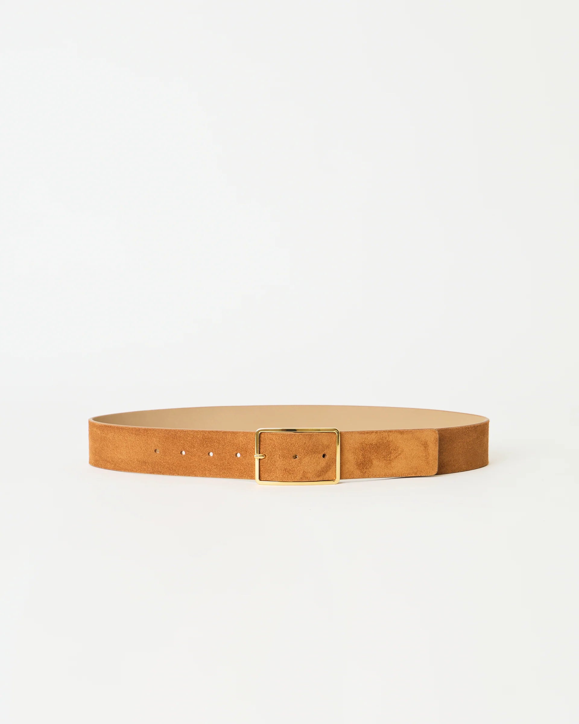 Our best-selling Milla belt made with a velvety Italian suede and finished with our signature rectangular buckle in a polished gold-tone finish. Designed with versatility in mind, the simplicity of this sleek design makes it an elegant accessory with endless styling possibilities.