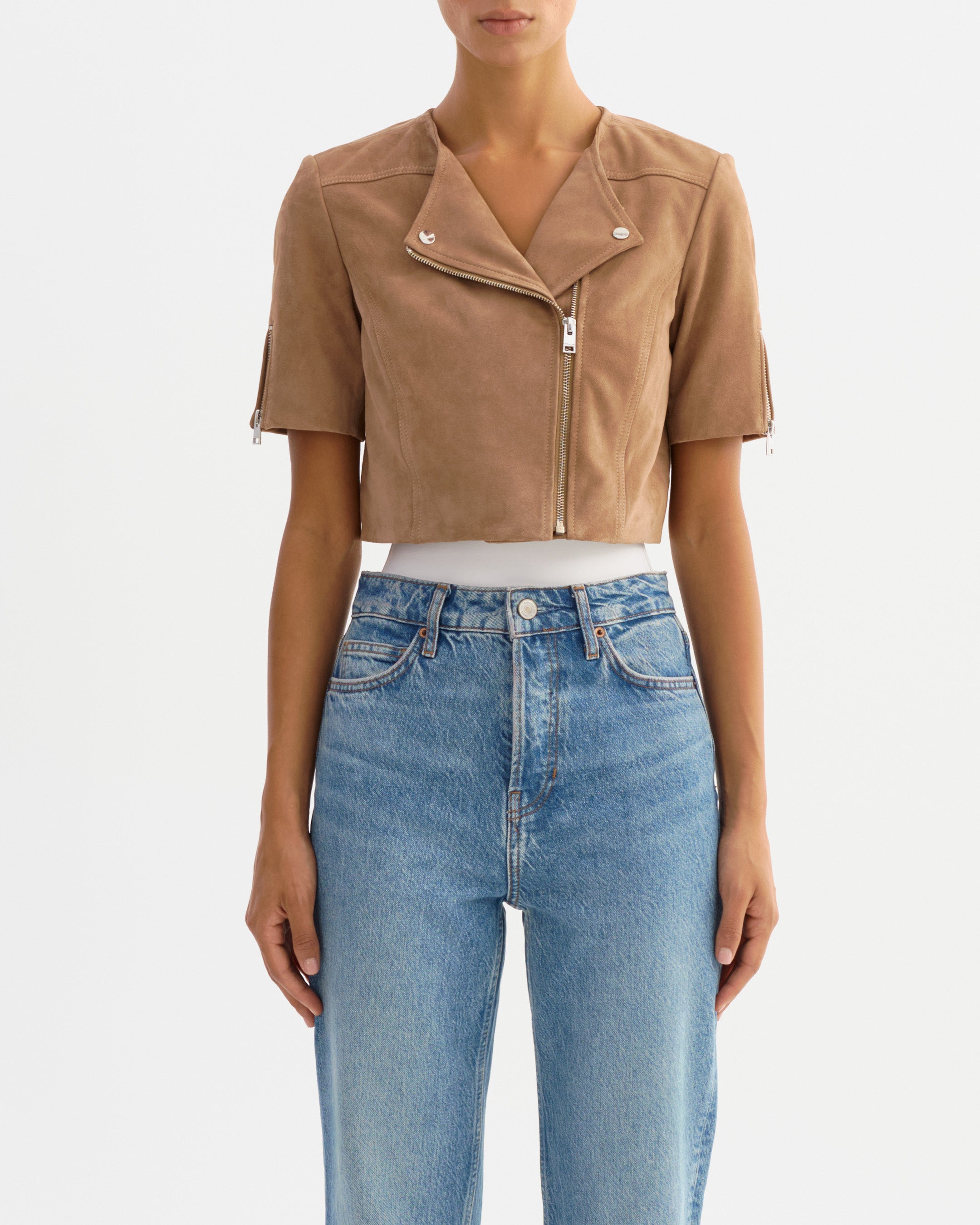 Unexpected in all the right ways, the Kirsi cropped biker jacket is an attractive choice for balmy evenings. Featuring classic biker elements from the asymmetrical closure to the snap lapels & gold branded hardware this beauty hits right at the hips to define your silhouette. You'll fall for its soft-to-the-touch lamb leather body. Lightweight and breathable, this top piece makes a flawless day to night transition.