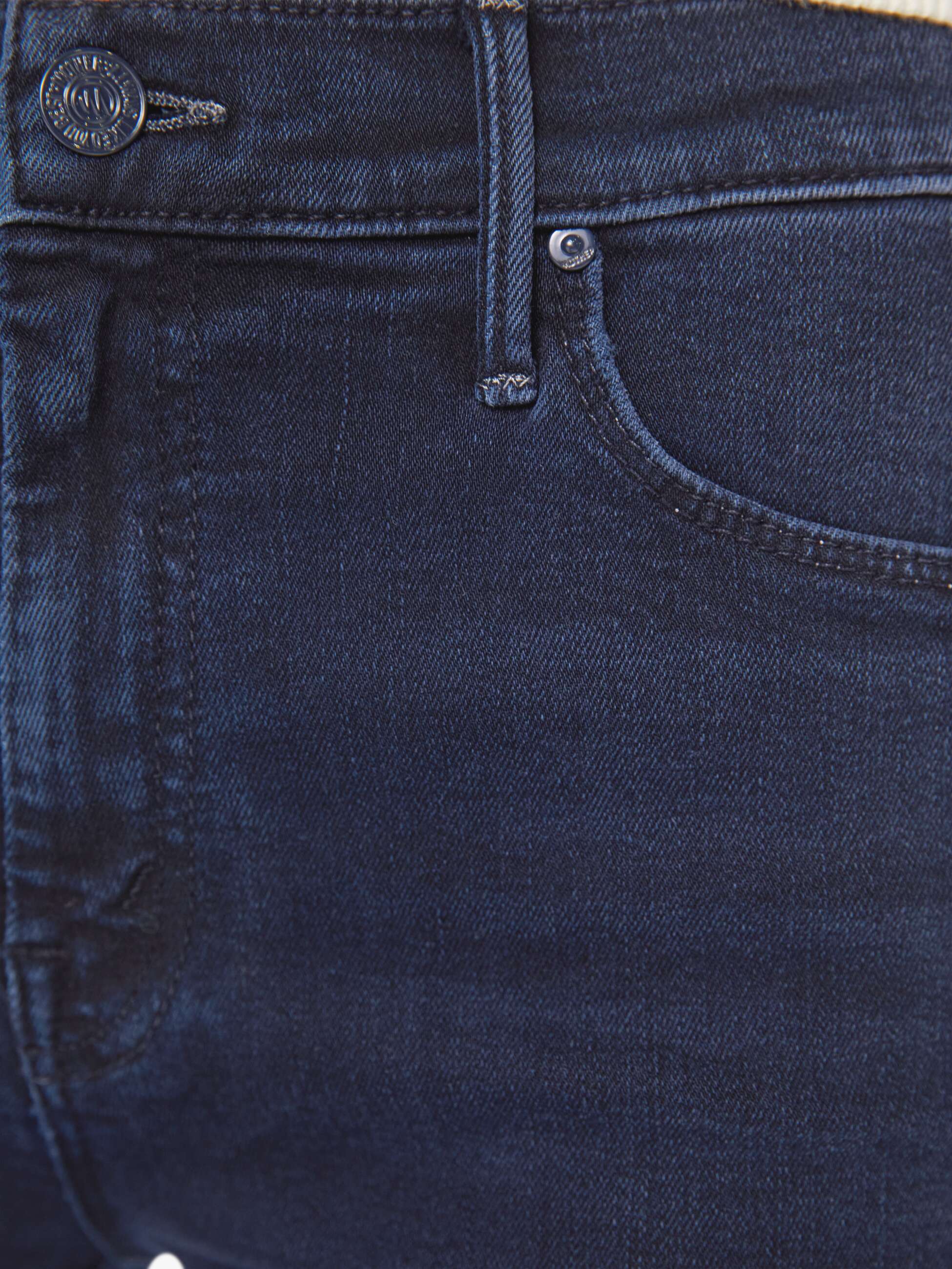 An expanded collection of foundational pieces designed for All Day, Every Day. Created for versatility, layering, and year-round wearability, these are the pieces you will never stop reaching for. Our most popular mid-rise flare has a 31-inch inseam with a frayed hem. Cut from denim with a touch of stretch, Chip On My Shoulder is a dark blue wash with super subtle fading and whiskering.