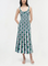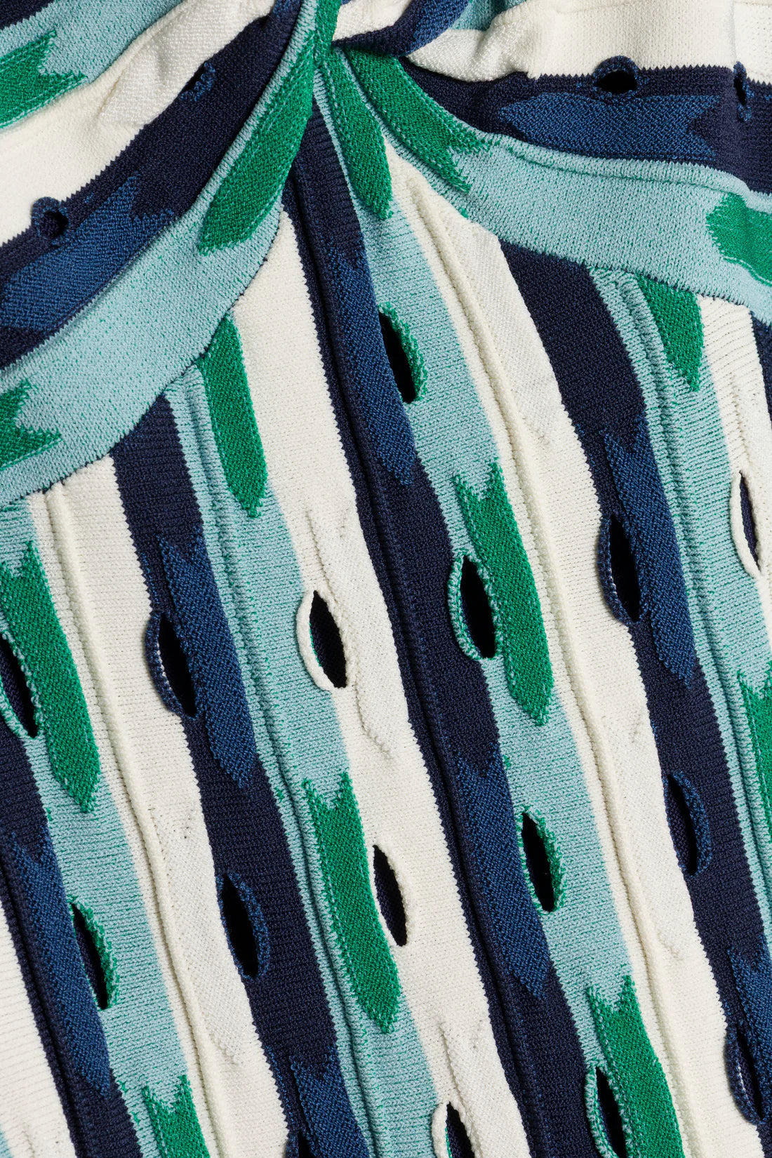 The Christina Knit Midi Dress in Kelly Green Multi.Constructed in compact eyelet knit, this midi dress contours the body with a soft vertical flow and releases into a gentle flare through the hem.