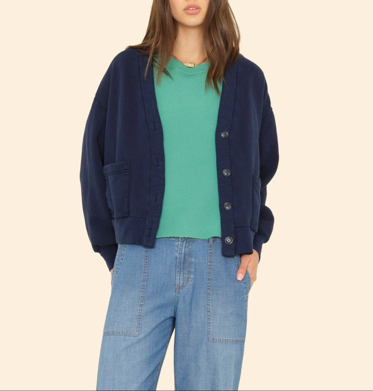 Benny is made in our ultra-soft fleece. This button-front cardigan sweatshirt features a deep V-neck, full length sleeves, and two front patch pockets.
