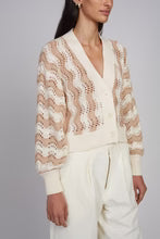 The Luna Cardi reimagines nautical through a romantic lens, crafted in a striking vertical chevron stitch in elegant ivory and sand. The slightly cropped silhouette and delicate three-button closure create a light, feminine ease—designed to be worn close to the skin or gently layered, depending on your mood.