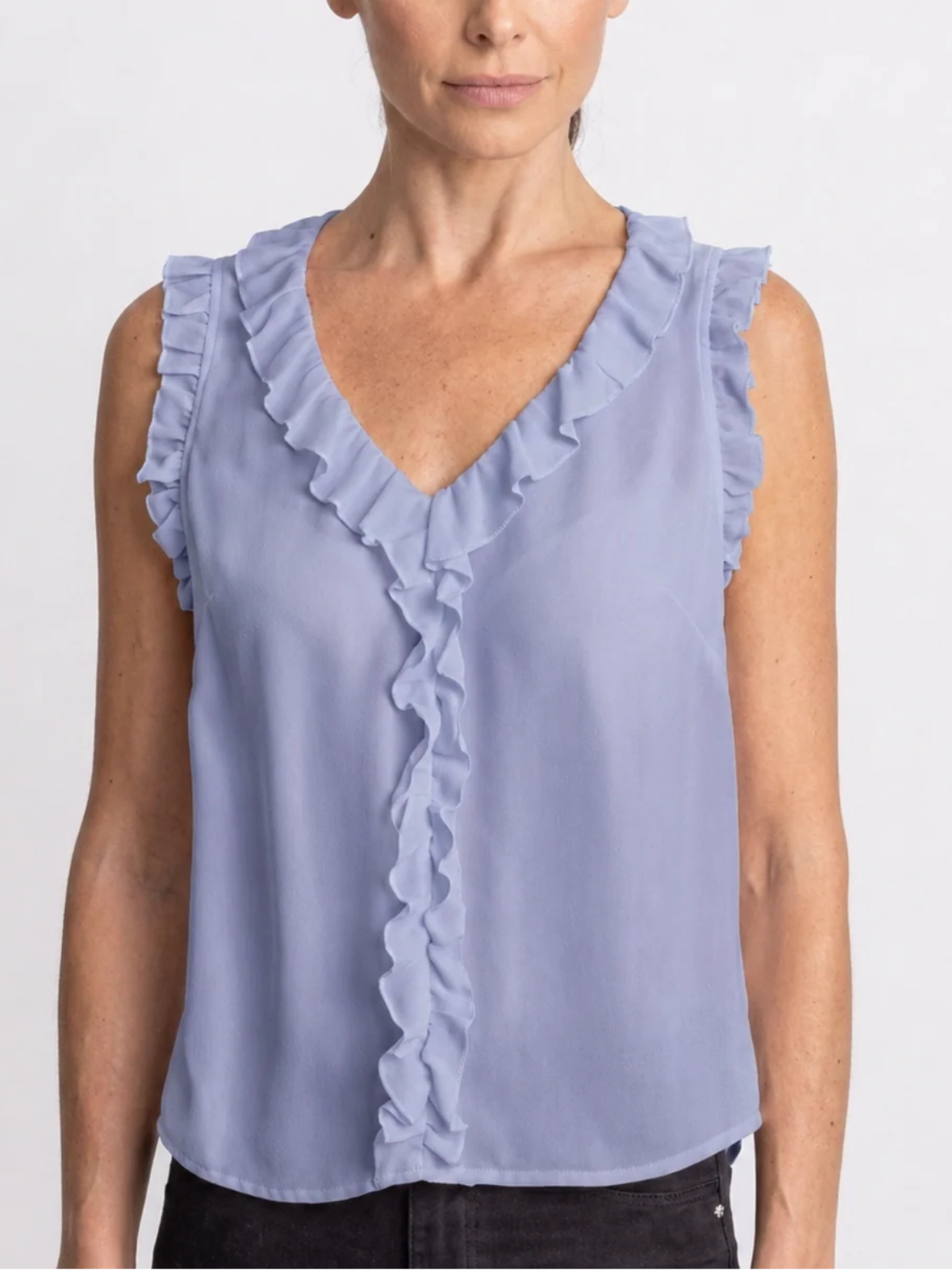 • V-neckline with flutter detail along the front