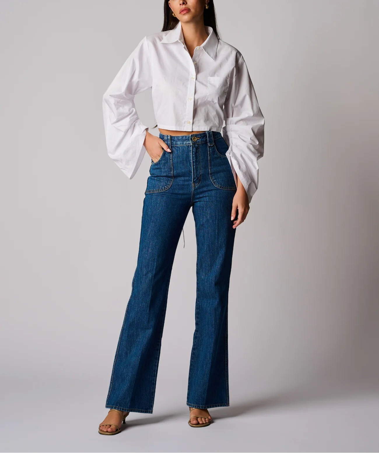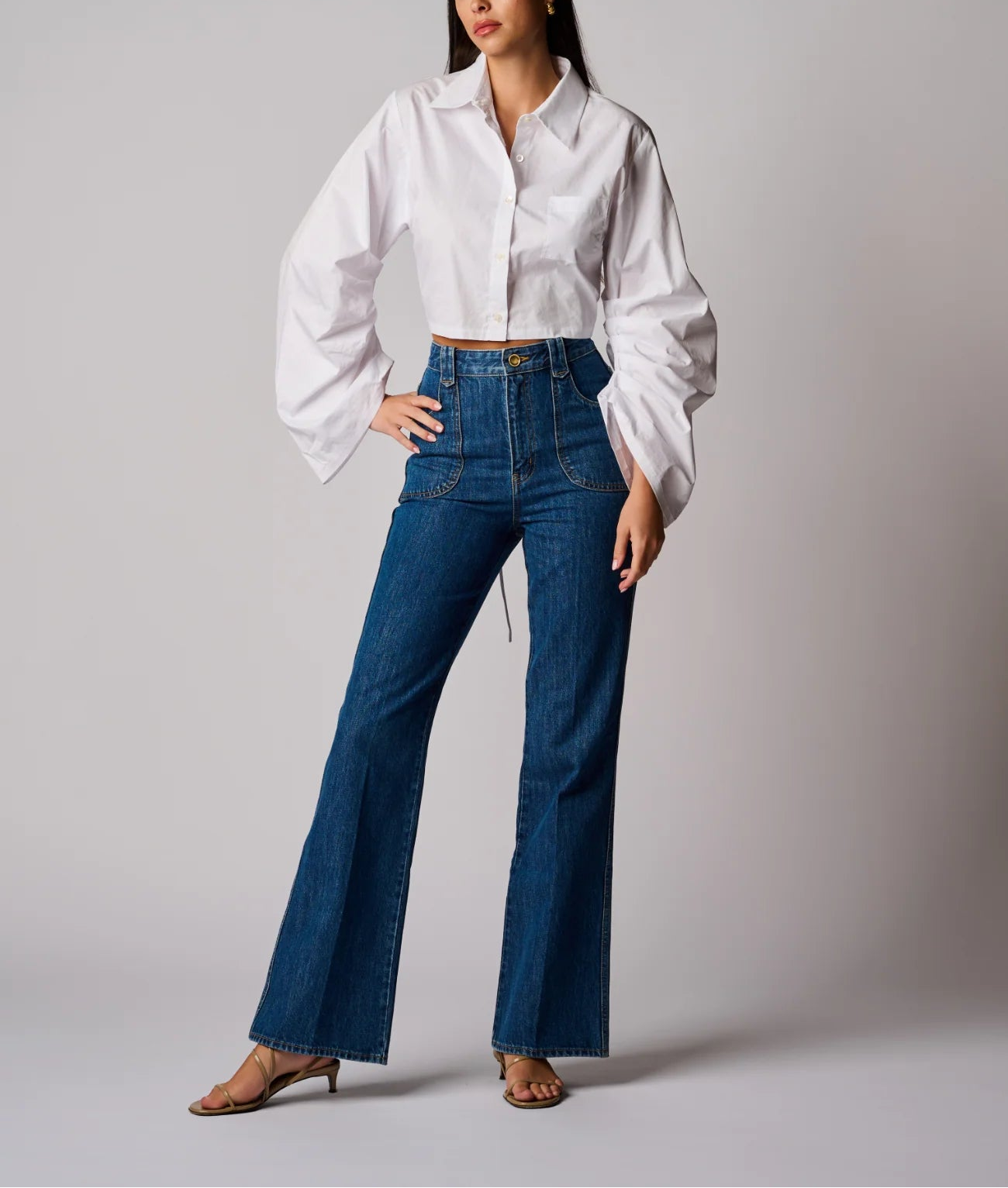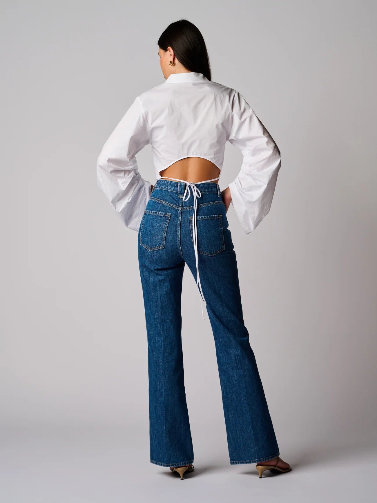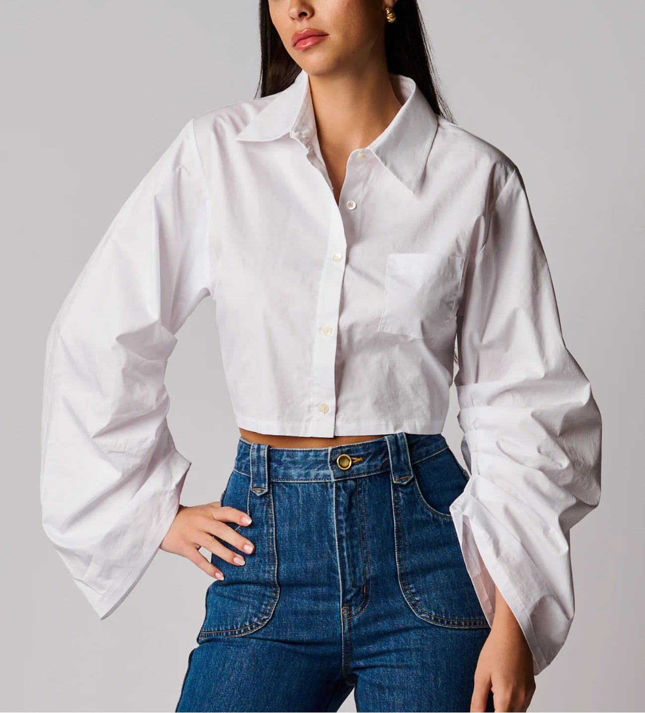 Add a touch of playful sophistication to your wardrobe with the Raquel Top. This poplin shirt features gathered sleeves for a whimsical touch, while the ties in the back with a small cutout offer a unique and flattering silhouette. Perfect for expressing your personal style with a touch of flair.