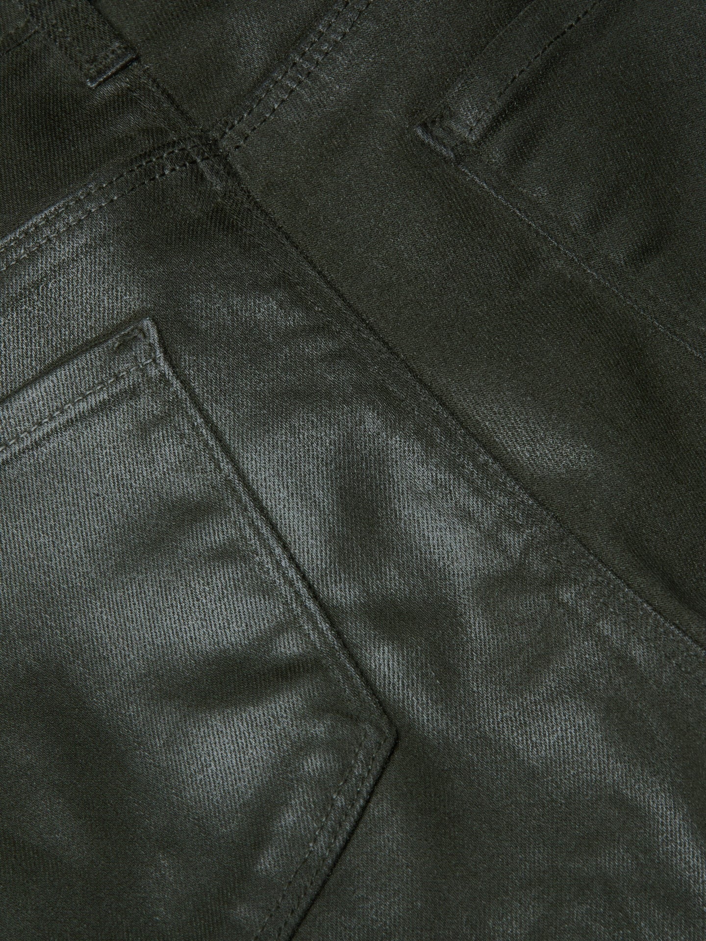 Ruth is the classic straight-leg, perfected. Reimagined each season in fresh washes and treatments and featuring a raw hem for easy alterations, she’s your most versatile jean. Now in our leather alternative olive green coated denim.