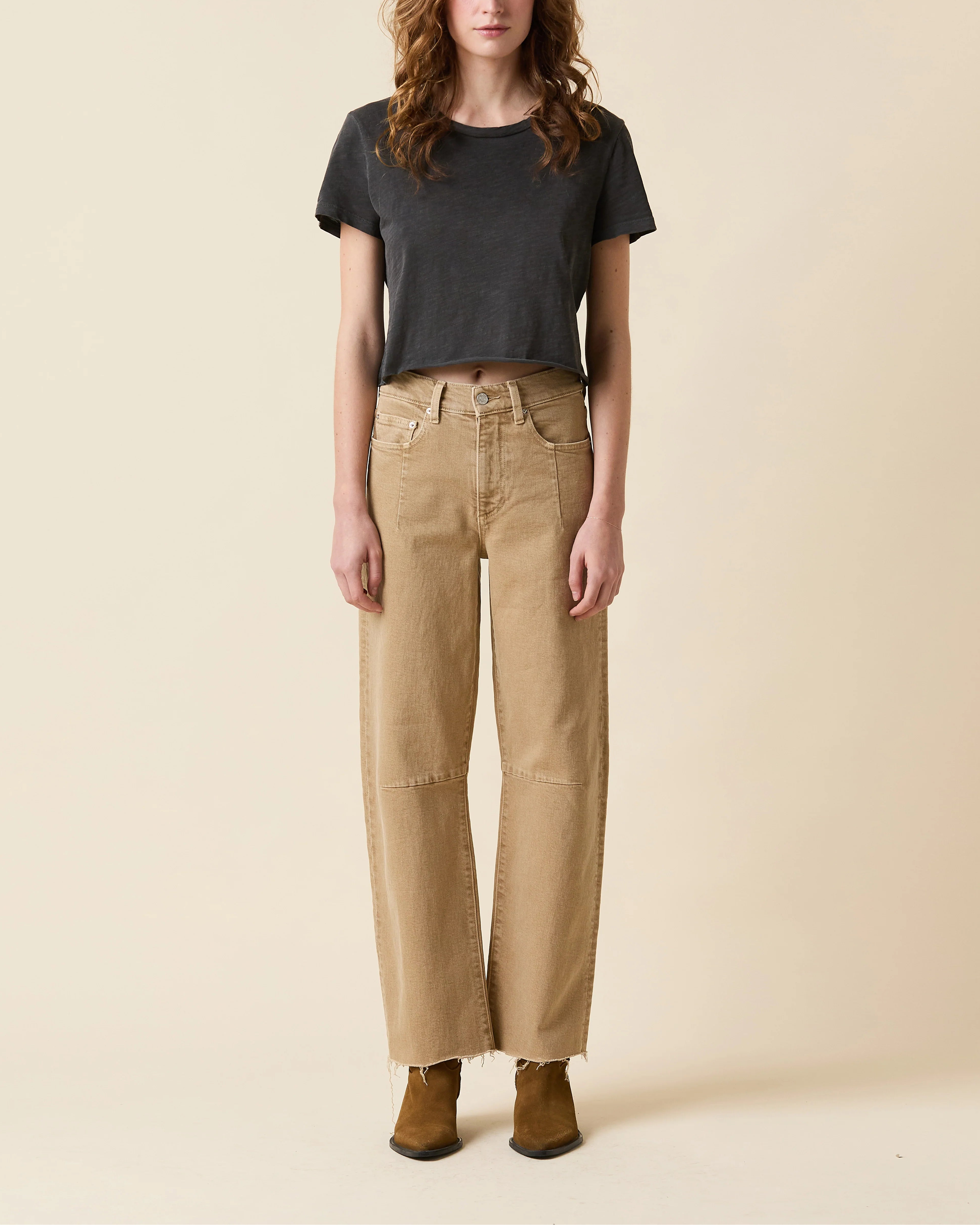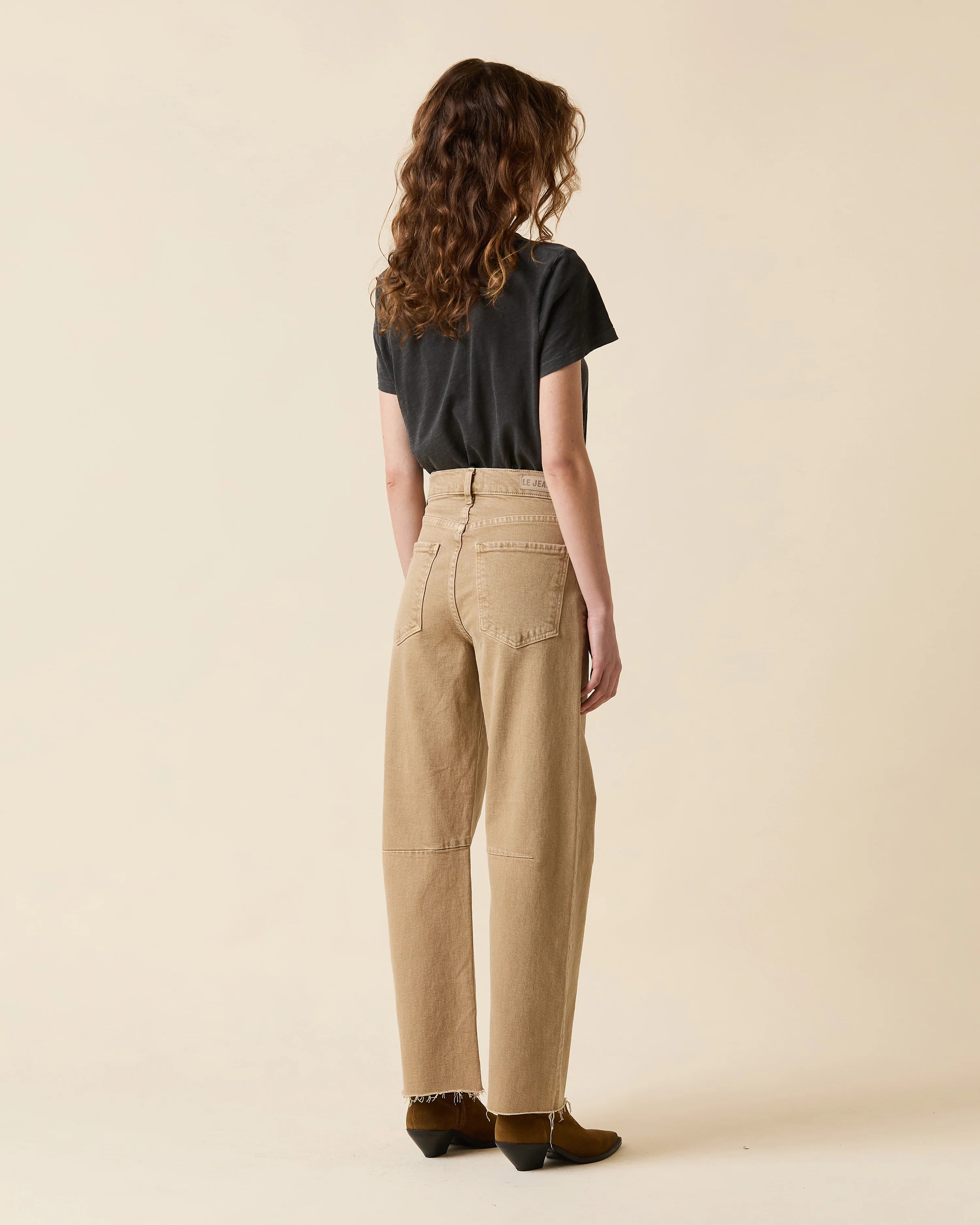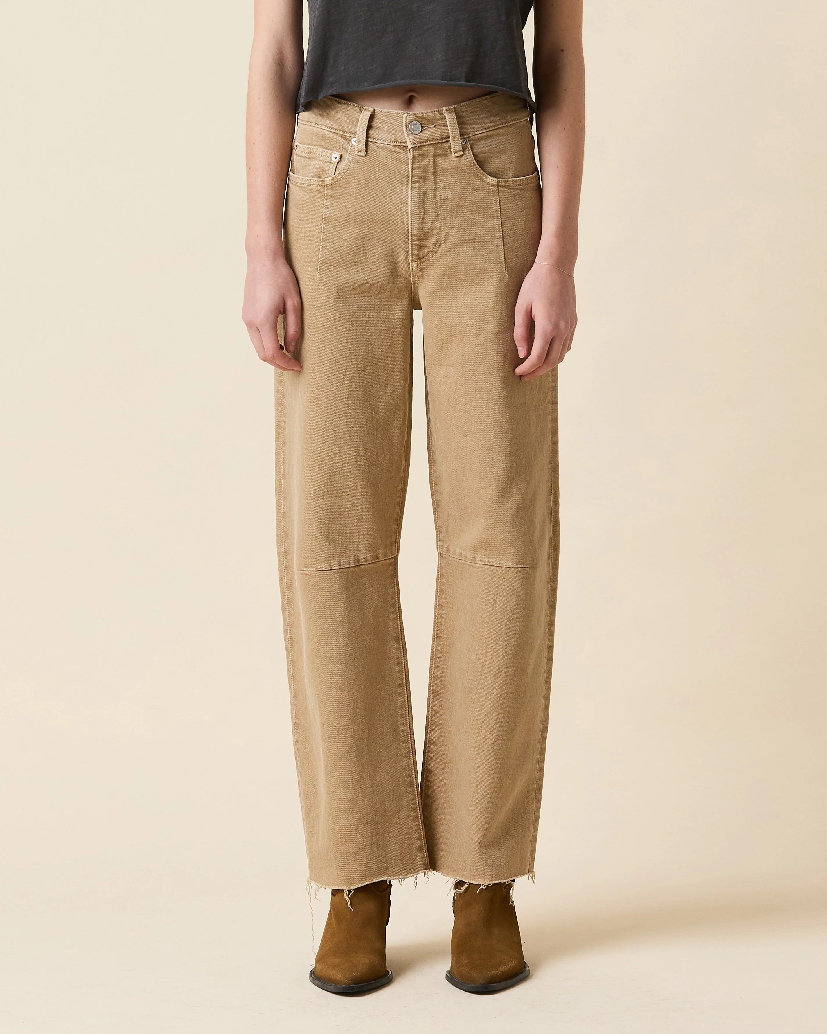 The Pixie Ankle Fray is a coveted silhouette, featuring a relaxed wide-straight leg with a softly curved outseam. Cut from mid-weight, ultra-soft denim in a sandwashed camel wash perfect for the season.