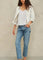Floral and leaf tonal embroidery - Double gauze cotton body - Gathered 3/4 sleeves - Striped woven cotton lining - Side slip pockets - 100% Cotton - Dry clean