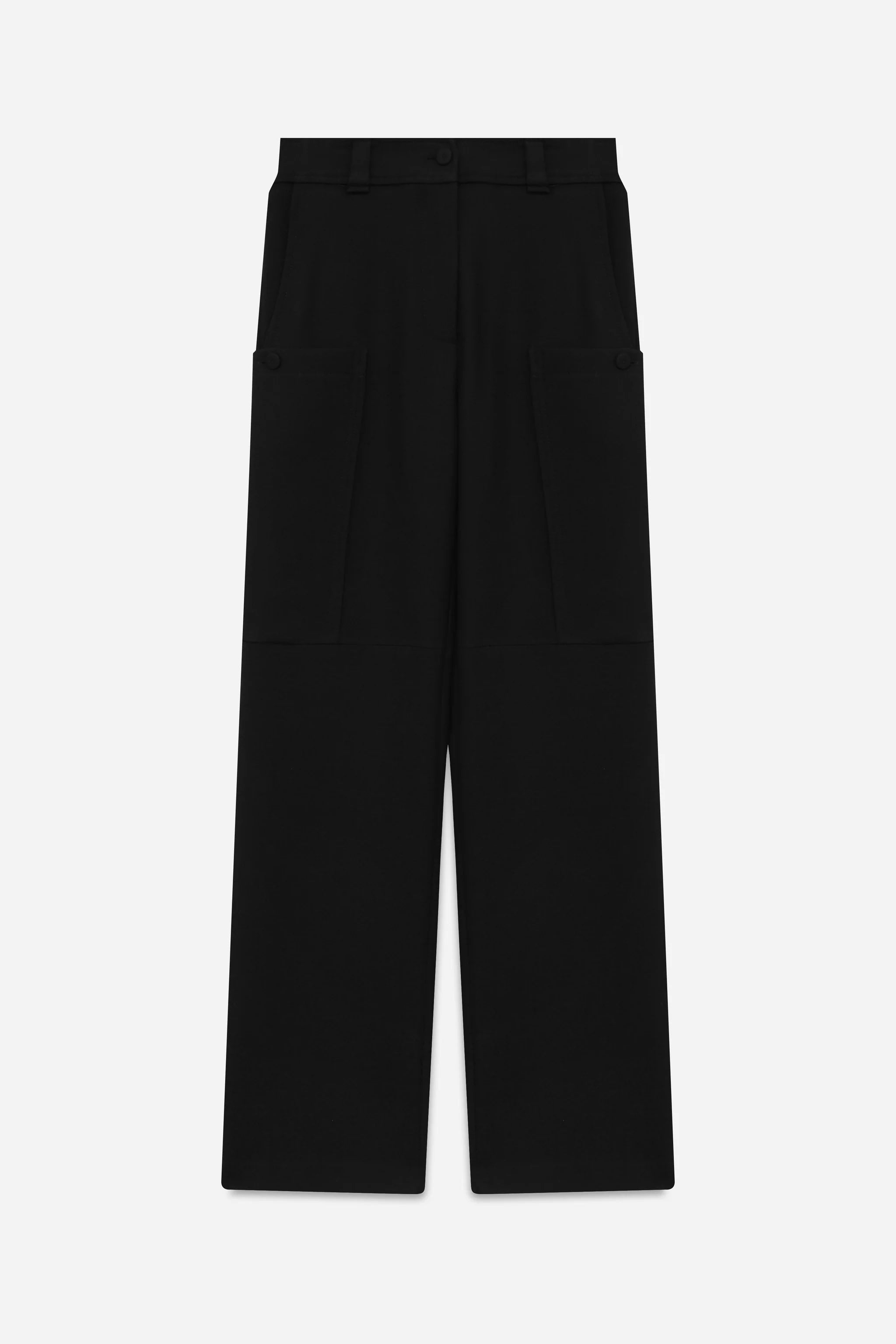 Lucky pants that rework the codes of tailoring with a utilitarian touch. Featuring large patch pockets on the sides and welt pockets on the back, they play on volume and functional details. Their structured cut and graphic cutouts modernize the silhouette, blending urban style with a workwear feel.