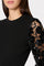 This sweater is crafted from a combination of ribbed knit fabric at the bodice and sheer, velvet embroidered sleeves for a dramatic effect. Style it with our Nash Cady Pant in black.