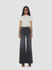 70s-inspired wide leg jeans with a high rise, 30-inch inseam and a clean hem. Designed in a stretch cotton blend, Not Today Satan is a black wash with whiskering, fading and tonal hardware.