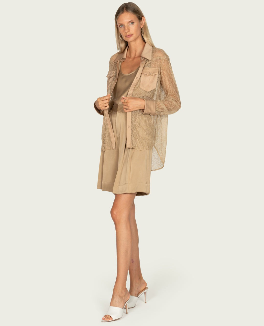 Romantic, yet chic blouse crafted from 100% silk and delicate lace to fit comfortably relaxed.