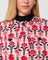 This short, blush pink tailored jacket is printed all over with our retro pattern and features long sleeves, shoulder pads, and a buttoned round neck. It has buttoned chest pockets. Wear it with the matching trousers for a complete retro look.